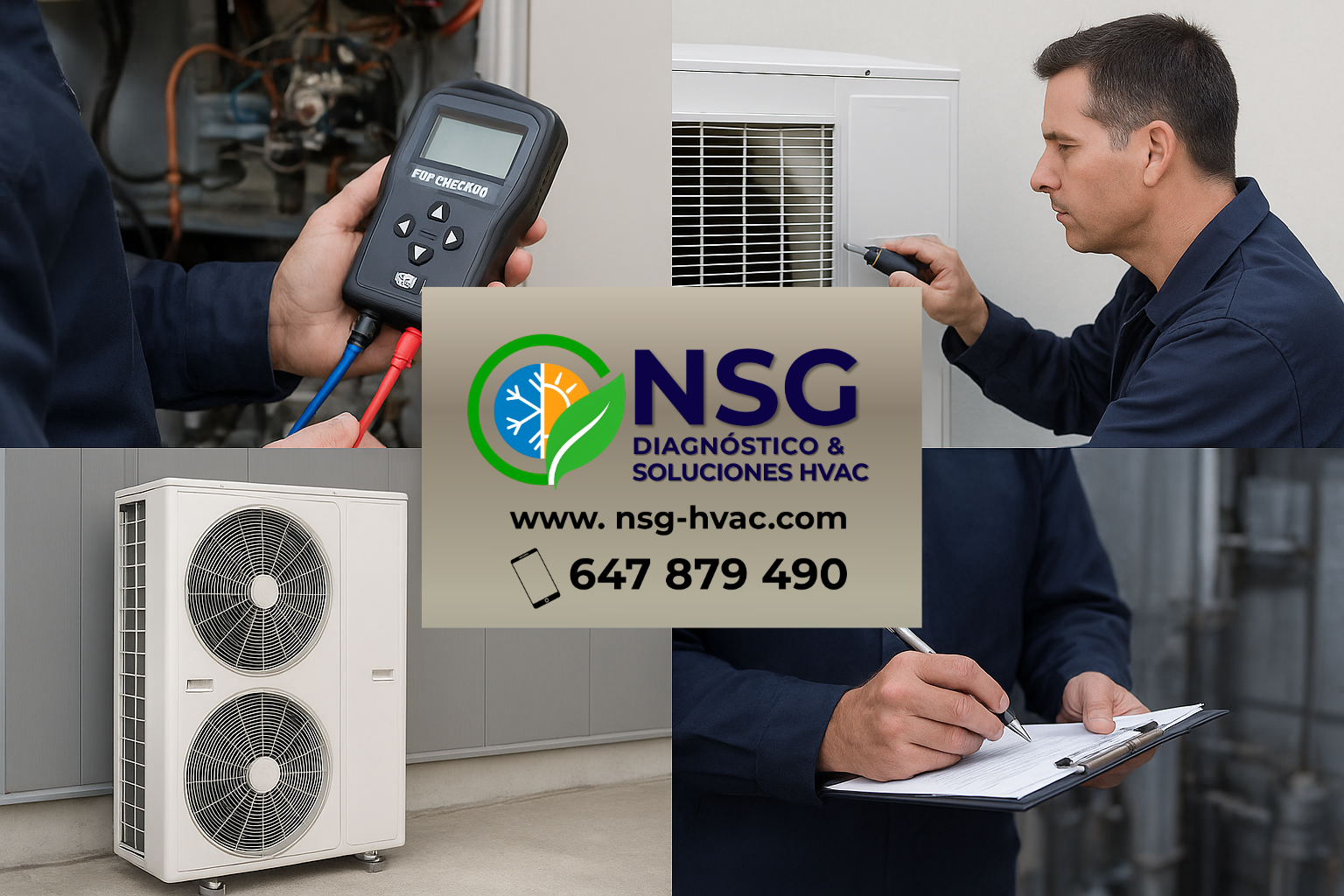 At NSG Diagnóstico & Soluciones HVAC, we offer a comprehensive service focused on technical excellence and total customer satisfaction. With over 30 years of experience in the air conditioning sector, we specialise in the diagnosis, maintenance, repair and optimisation of HVAC systems of all brands and technologies.